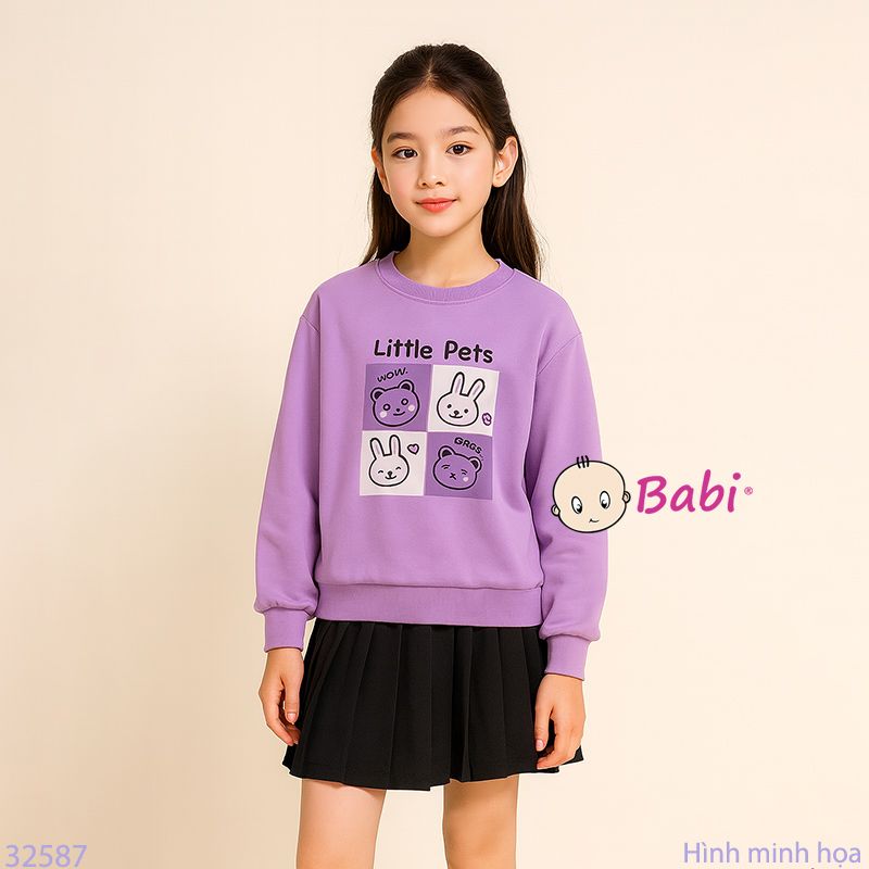 Áo Thun Cổ Tròn Cho Bé Gái Tay Dài Họa Tiết Xinh Xắn (6 - 15 tuổi)