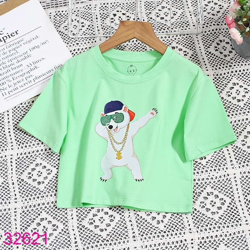 Áo Thun Croptop Tay Ngắn Bé Gái In Bé Cún Sành Điệu (15kg - 45kg)