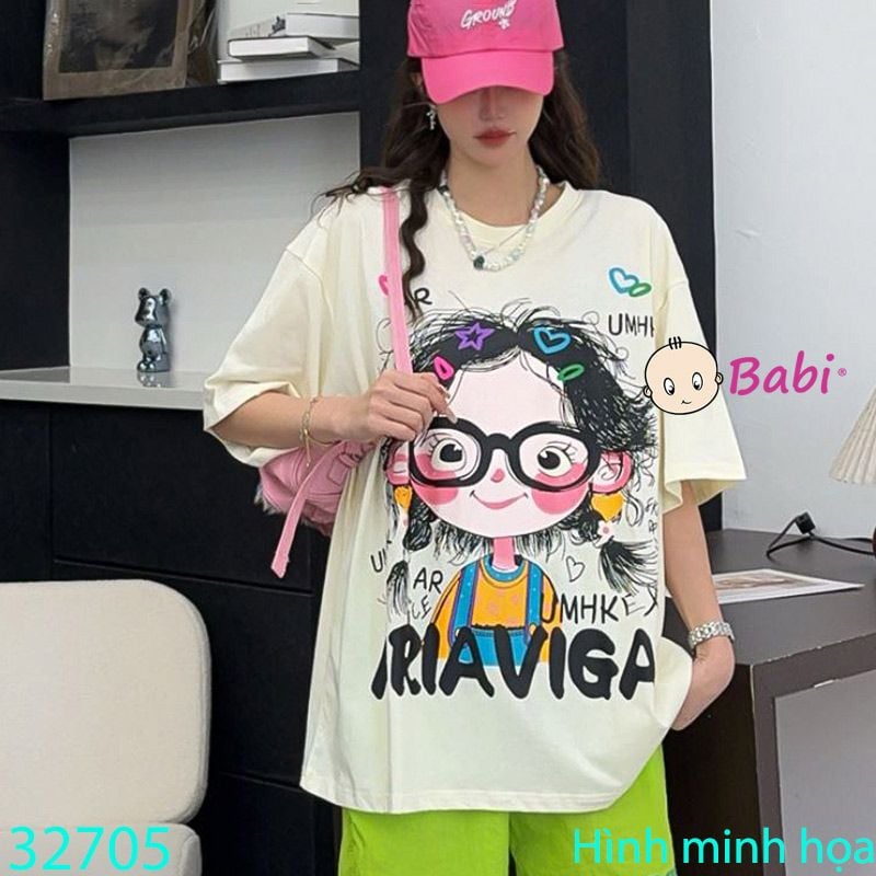 Áo Thun Tay Ngắn Hình Cô Gái Cho Mẹ Và Bé (23kg - 65kg)