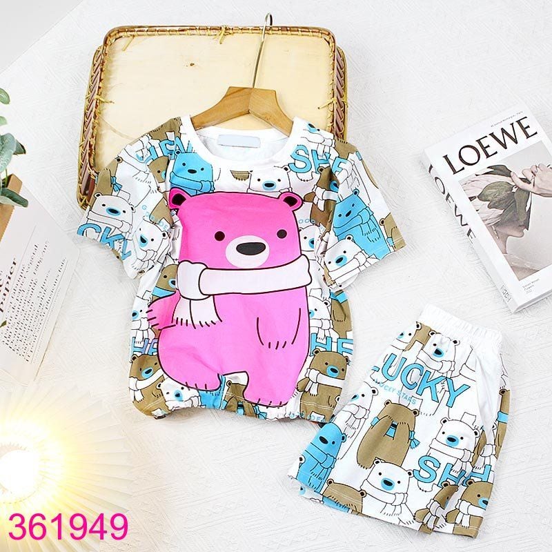 Bộ Bé Gái Áo Rút Dây In Gấu Quần Short Năng Động (20kg-55kg)