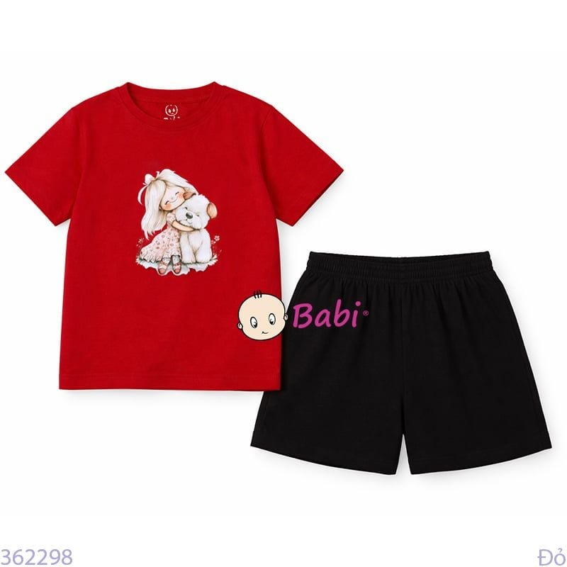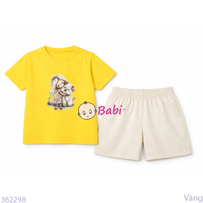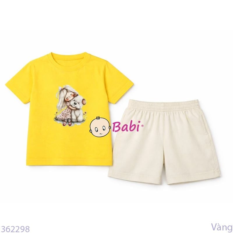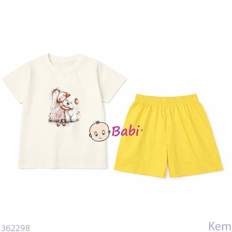 Bộ Bé Gái Tay Ngắn Quần Đùi Hình Bé Và Cún (24-52kg)