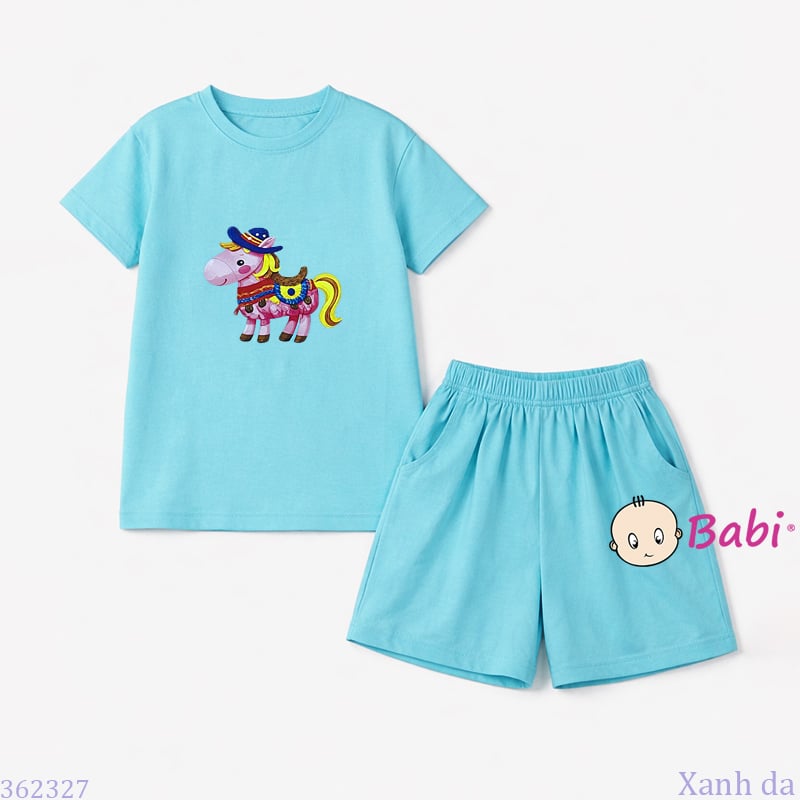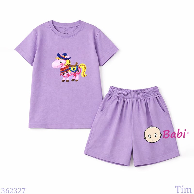 Bộ Bé Gái Tay Ngắn Quần Đùi In Chú Ngựa (20-55kg)