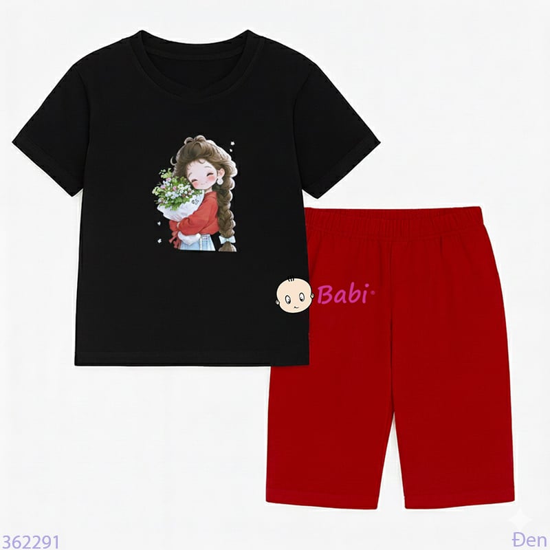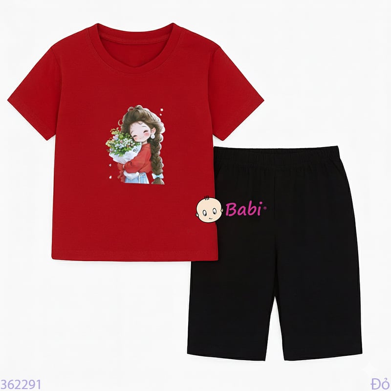 Bộ Bé Gái Tay Ngắn Quần Lửng Bé Áo Đỏ (20-55kg)