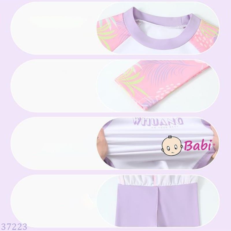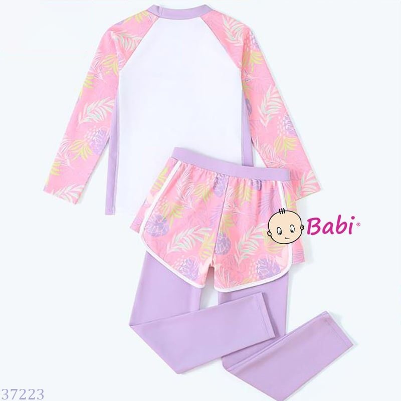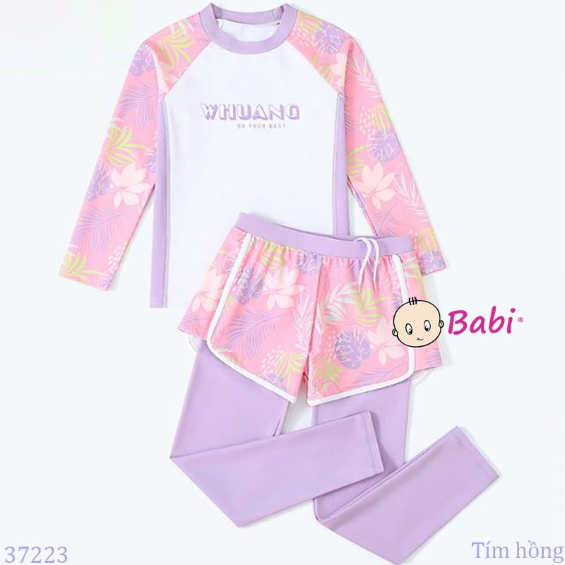Bộ Bơi Bé Gái Tay Dài Quần Dài Màu Tím Hồng (26-50kg)