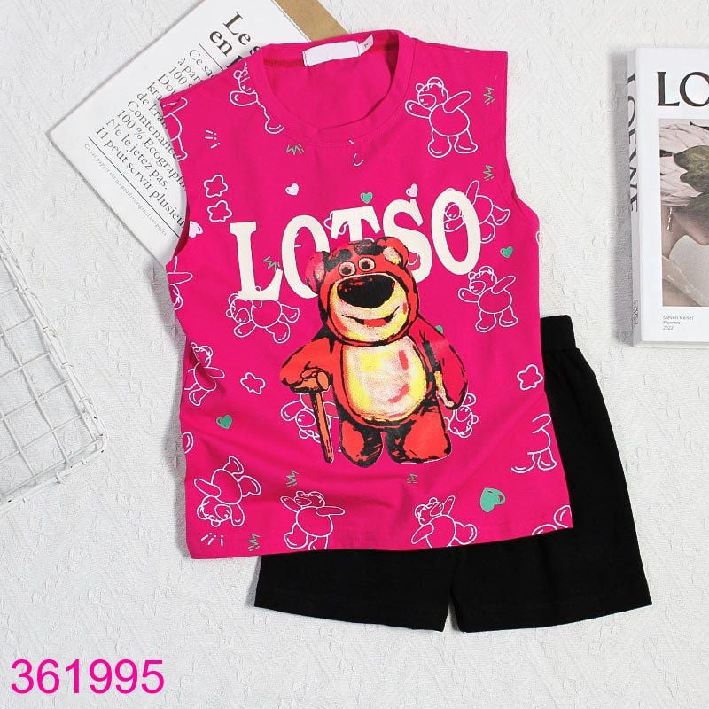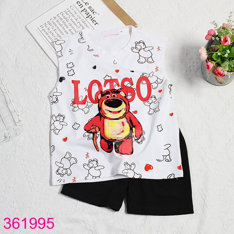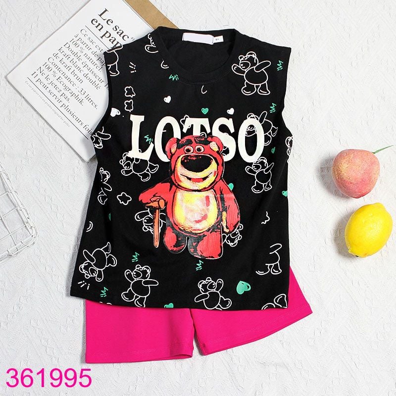 Bộ Mặc Nhà Nách Quần Đùi In Gấu Dâu Xinh Xắn (11kg - 35kg)
