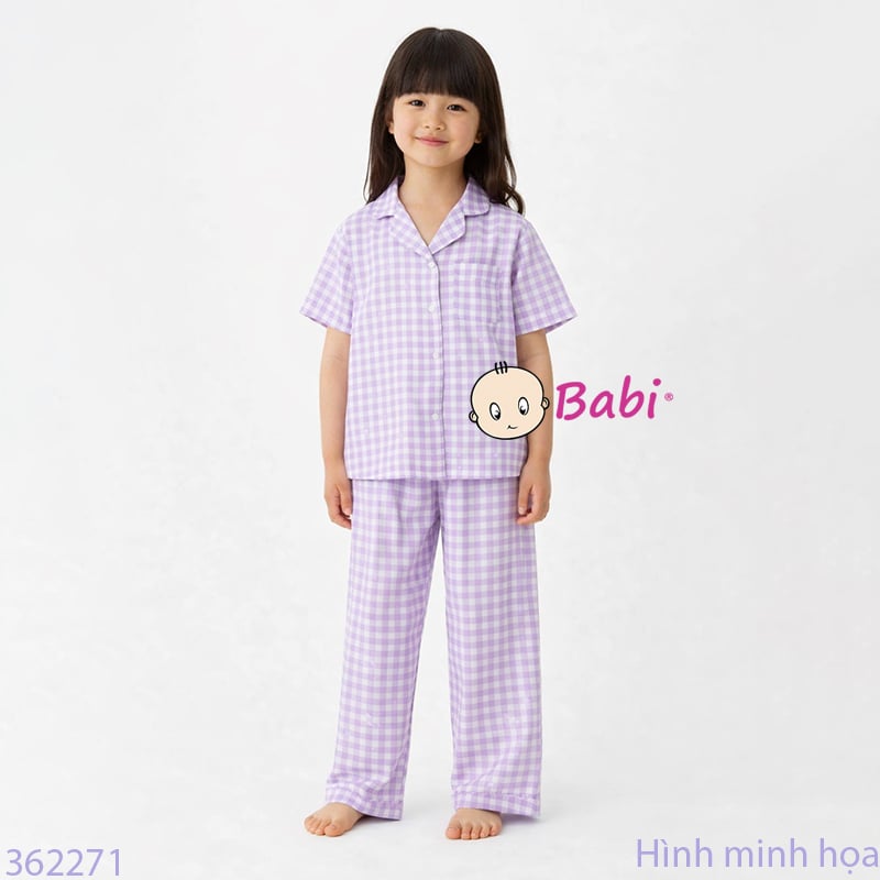 Bộ Pijama Tay Ngắn Quần Dài Họa Tiết Caro Tím (25-58kg)