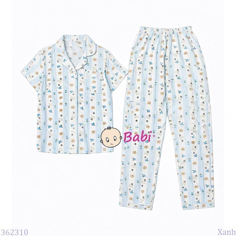 Bộ Pijama Tay Ngắn Quần Dài Hình Gấu M2 (25-58kg)
