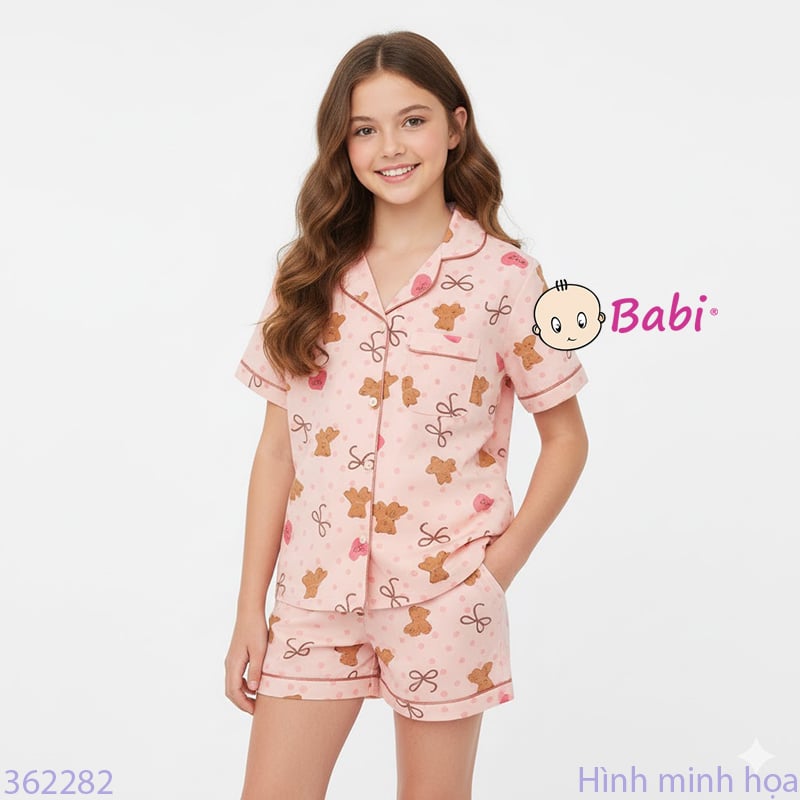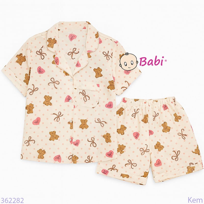 Bộ Pijama Tay Ngắn Quần Đùi Họa Tiết Gấu Bi (25-58kg)