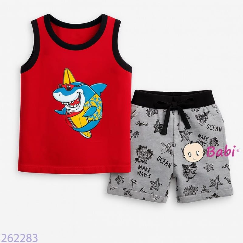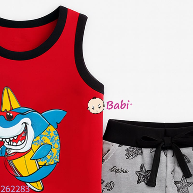 Bộ Sát Nách Quần Lửng Bé Trai In Cá Mập (10-25kg)