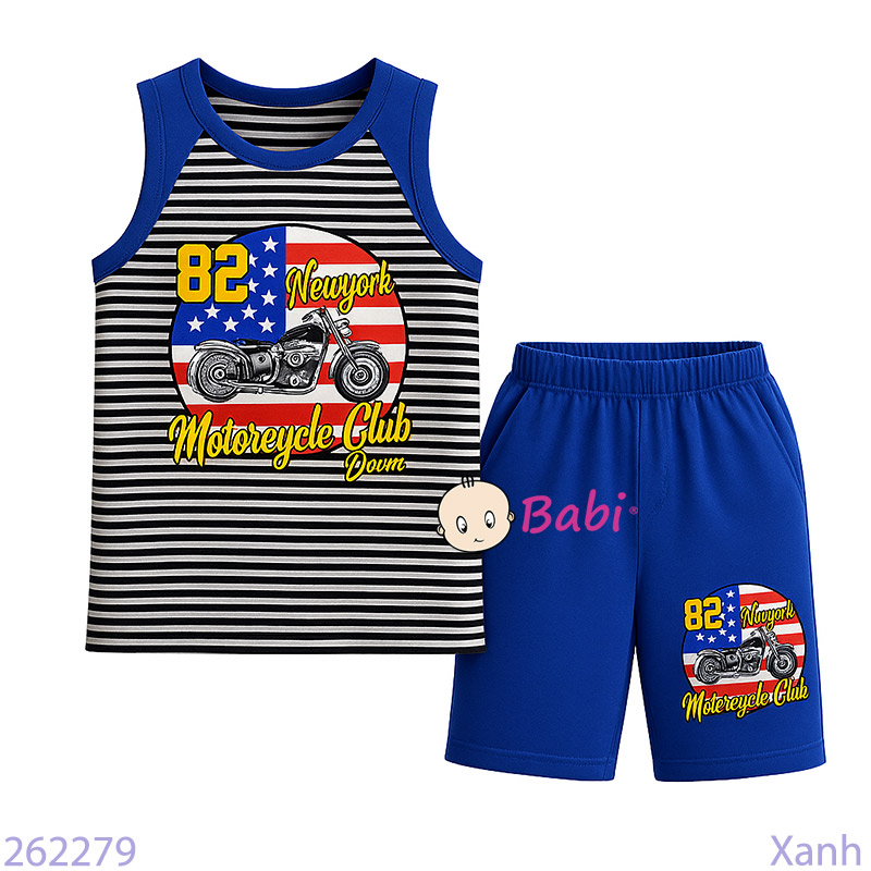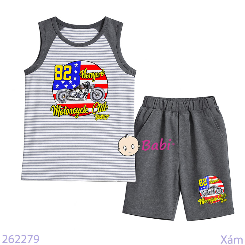 Bộ Sát Nách Sọc Raplang Quần Lửng In Xe (10-25kg)