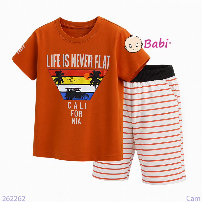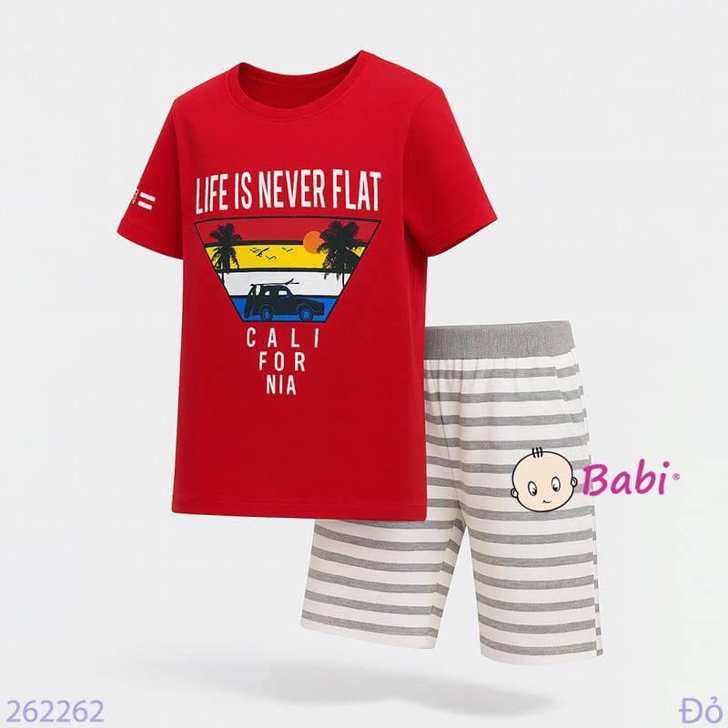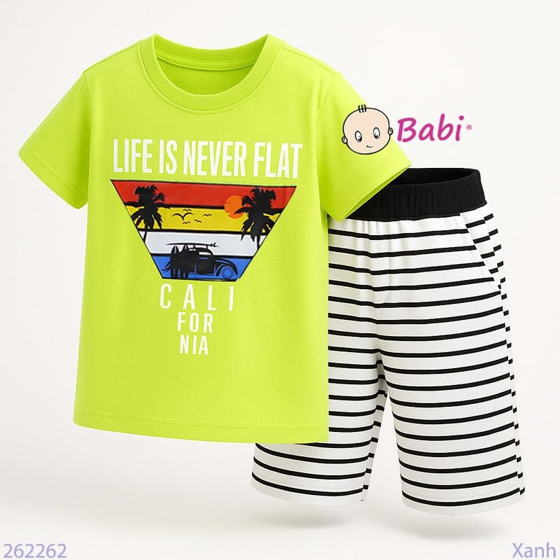 Bộ Tay Ngắn Quần Lửng In Chữ Califorina (30-47kg)