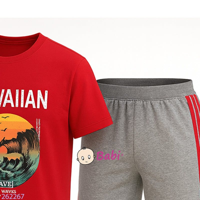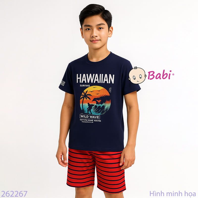 Bộ Tay Ngắn Quần Lửng In Chữ Hawaiian (30-60kg)