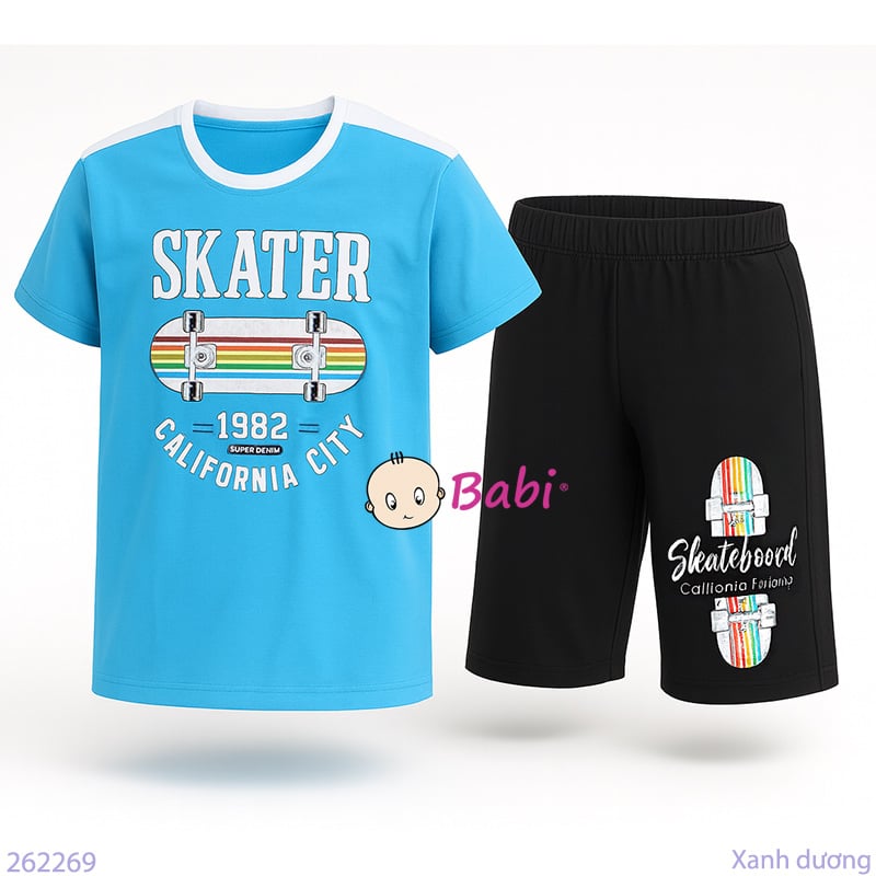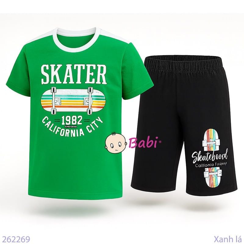 Bộ Tay Ngắn Quần Lửng In Chữ Skater (48-60kg)