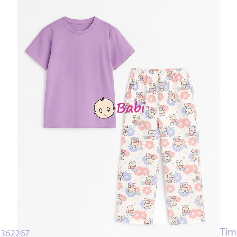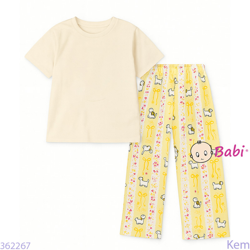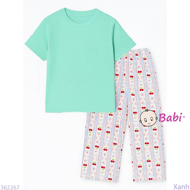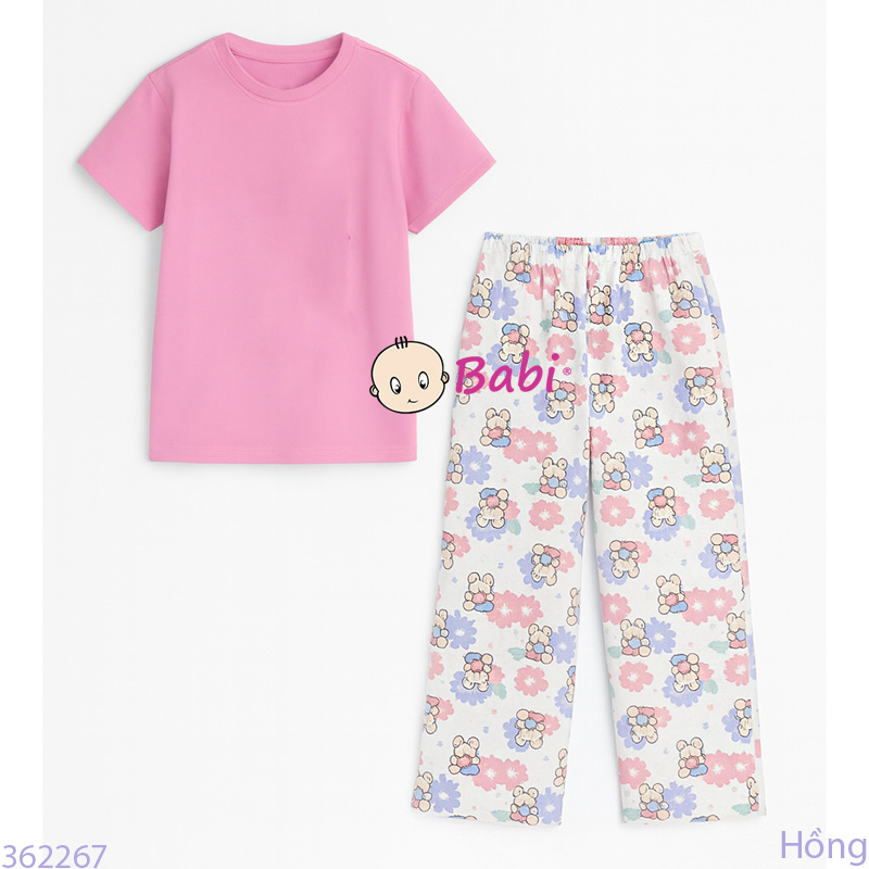 Bộ Tay Ngắn Quần Suông Dài Bé Gái Màu Trơn (56-72kg)