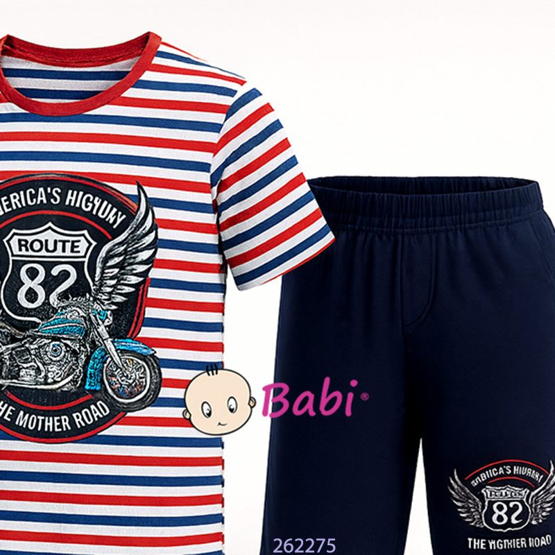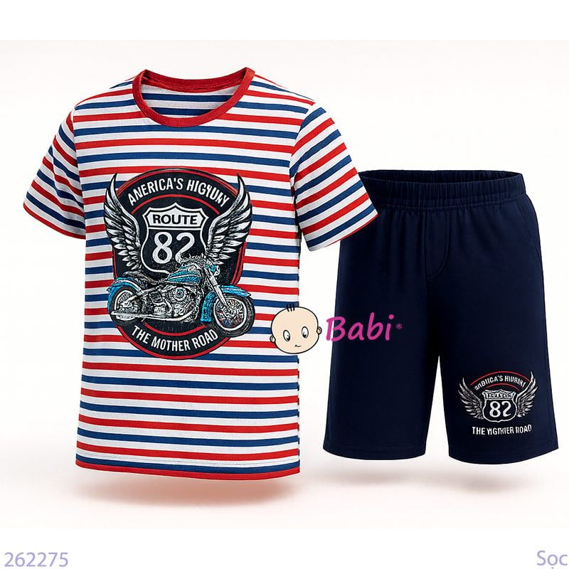Bộ Tay Ngắn Sọc Quần Lửng In Hình Moto (30-47kg)