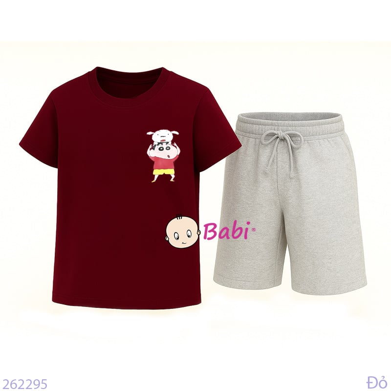 Bộ Thun Bé Trai Tay Ngắn Quần Ngắn Hình Shin Áo Đỏ (23kg - 62kg)