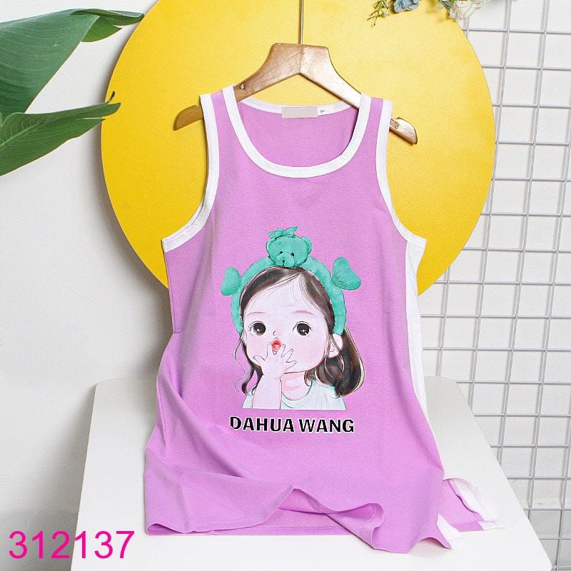 Đầm thun bé gái sát nách mặc mát, in hình dễ thương