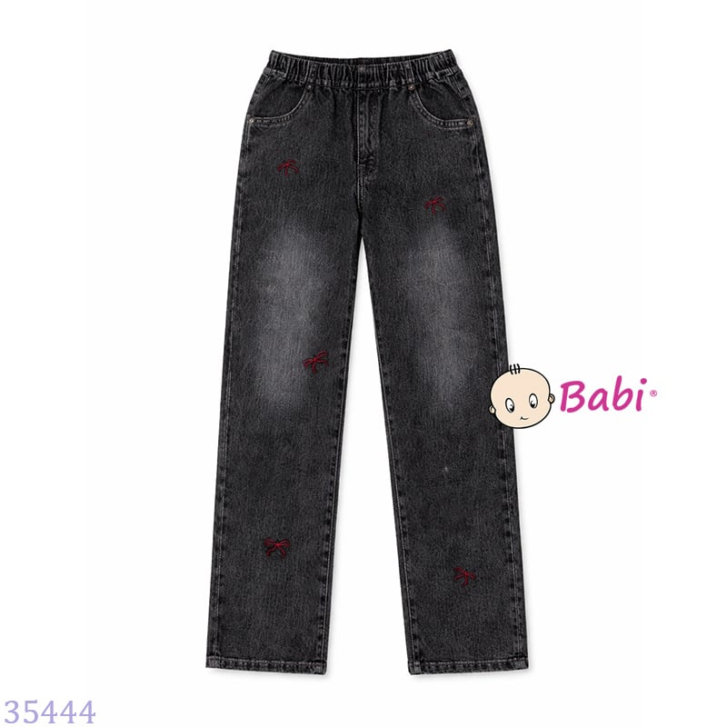 Quần Jeans Dài Bé Gái Thêu Nơ Đỏ M14 (26-45kg)