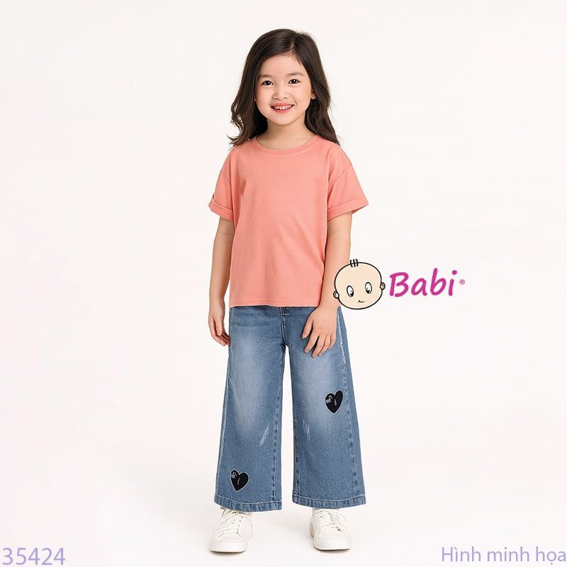 Quần Jeans Suông Dài Thêu Tim Cho Mẹ Và Bé (28kg - 50kg)