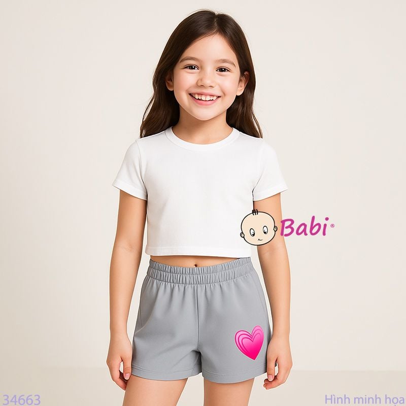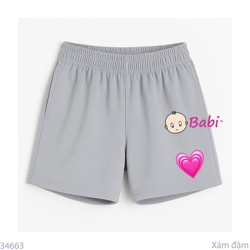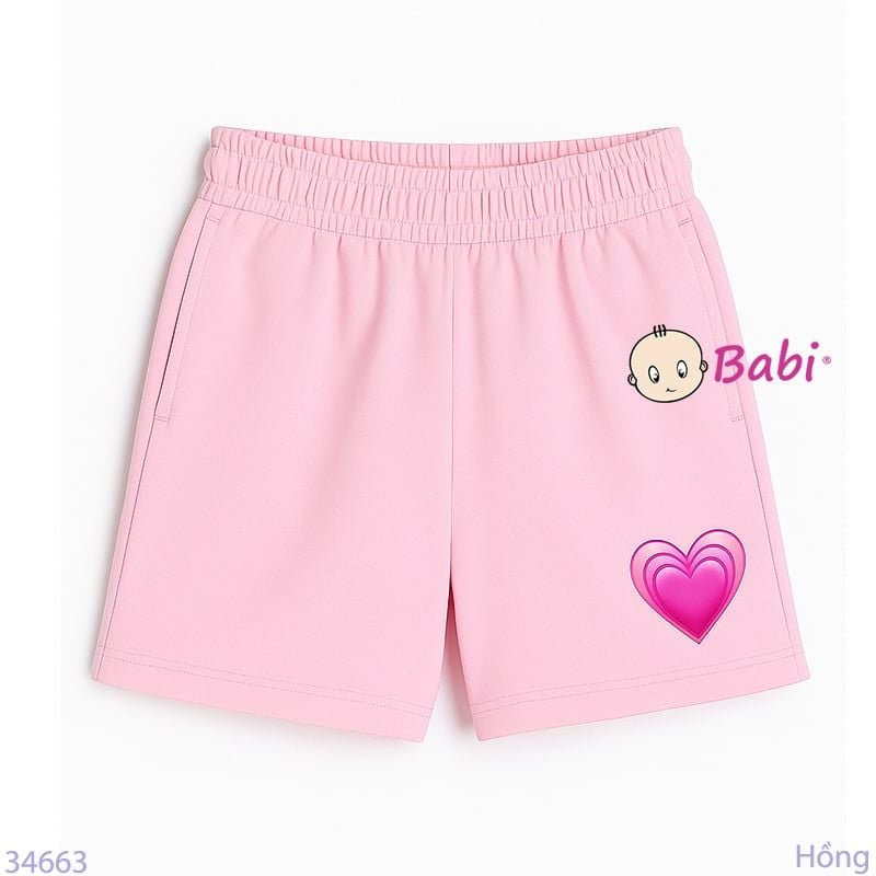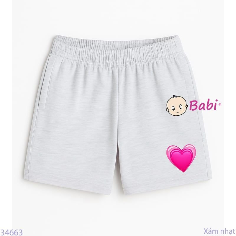 Quần Short Màu Trơn In Tim Cho Mẹ Và Bé (20kg - 53kg)
