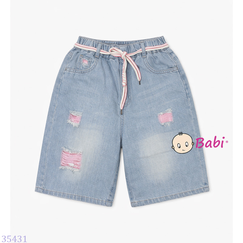 Quần Short Jeans Bé Gái Màu Trơn Kèm Dây M12 (26-45kg)